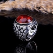 Agakulche Gümüş Erkek Kırmızı Taşlı Damask Desen Yüzük Gümüş