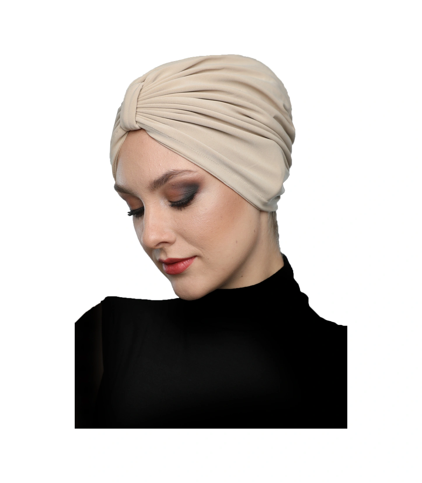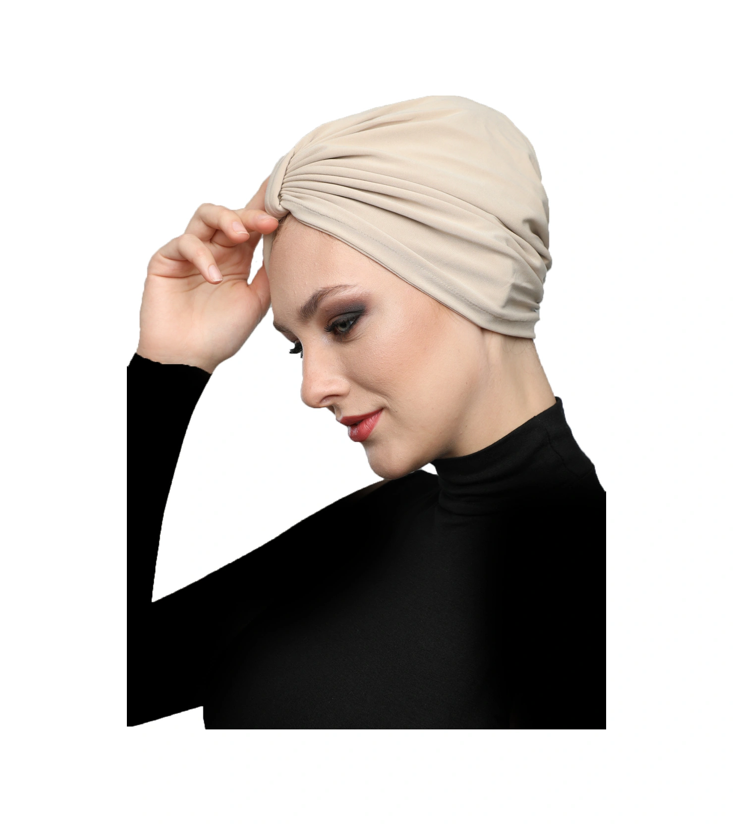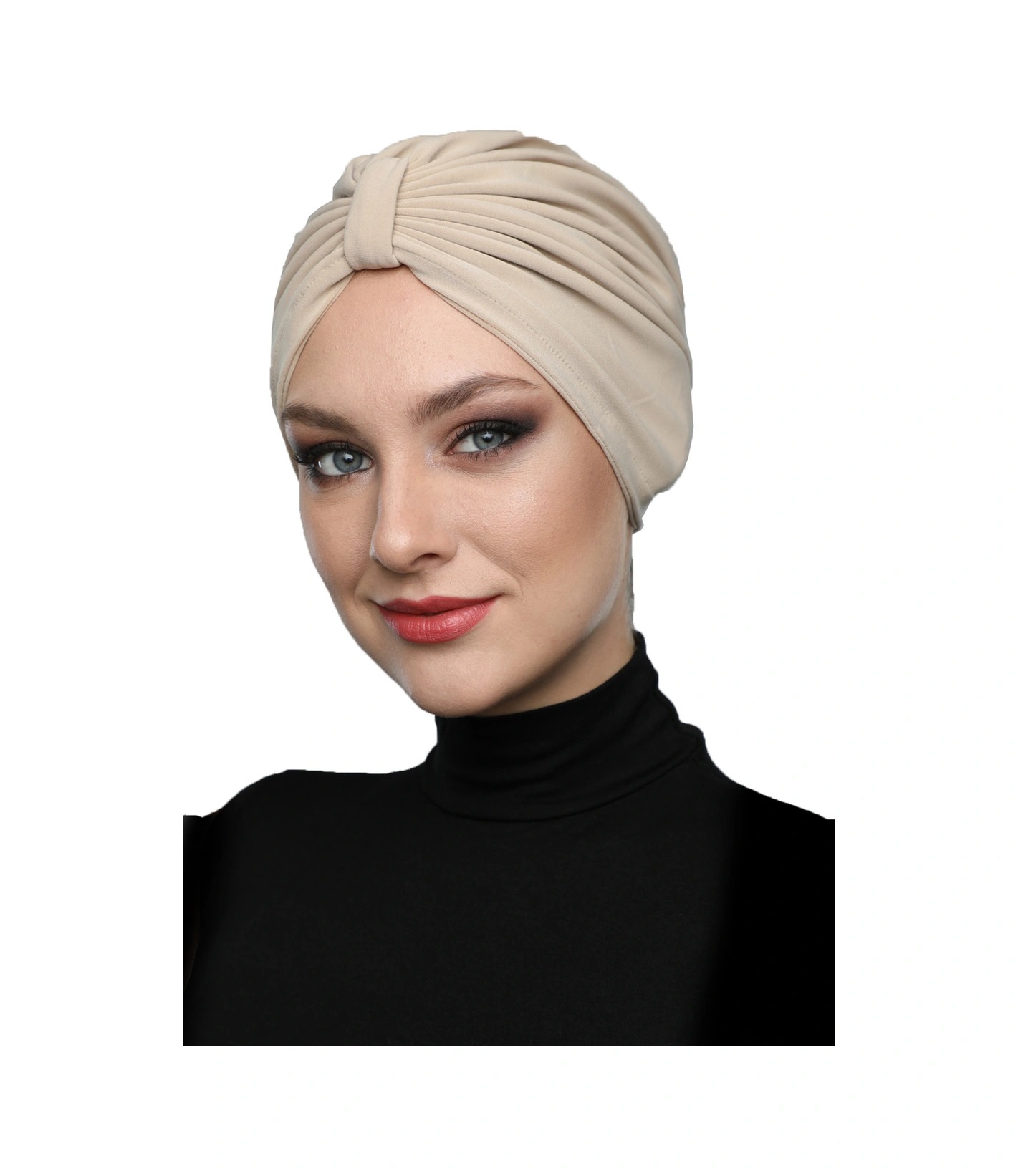 Kelebek Astarlı Bej Hazır Türban Tesettür Havuz Bonesi Bej