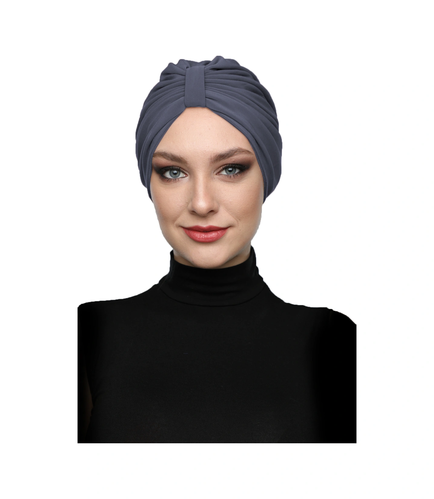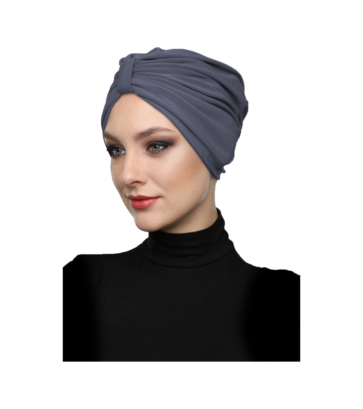 Kelebek Astarlı Koyu Gri Hazır Türban Tesettür Havuz Bonesi Koyu Gri