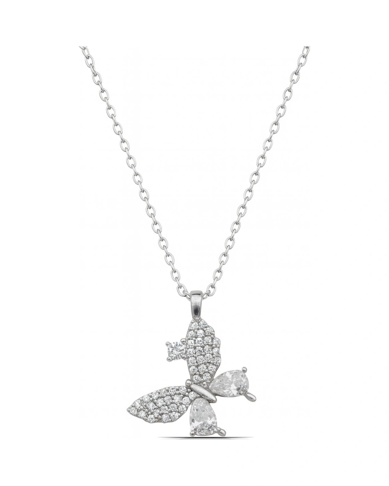 Kelebek Beyaz Zirkon Taşlı 925 Ayar Gümüş Kadın Kolye Gümüş