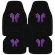 Kelebek Desenli Mor Nakışlı 5 Parça Siyah Oto Halı Paspas Seti Kadın Sürücülere Özel Şık Tasarım