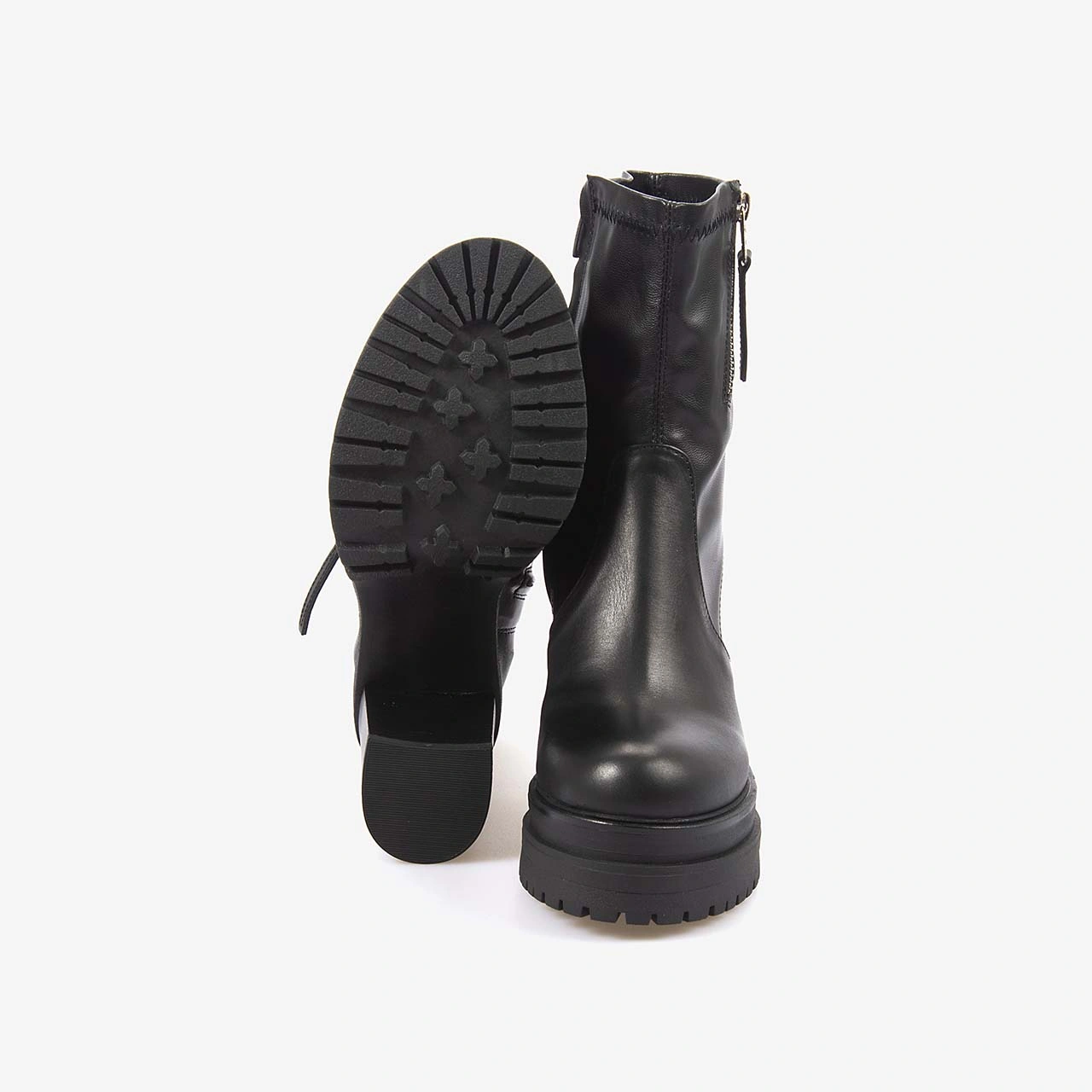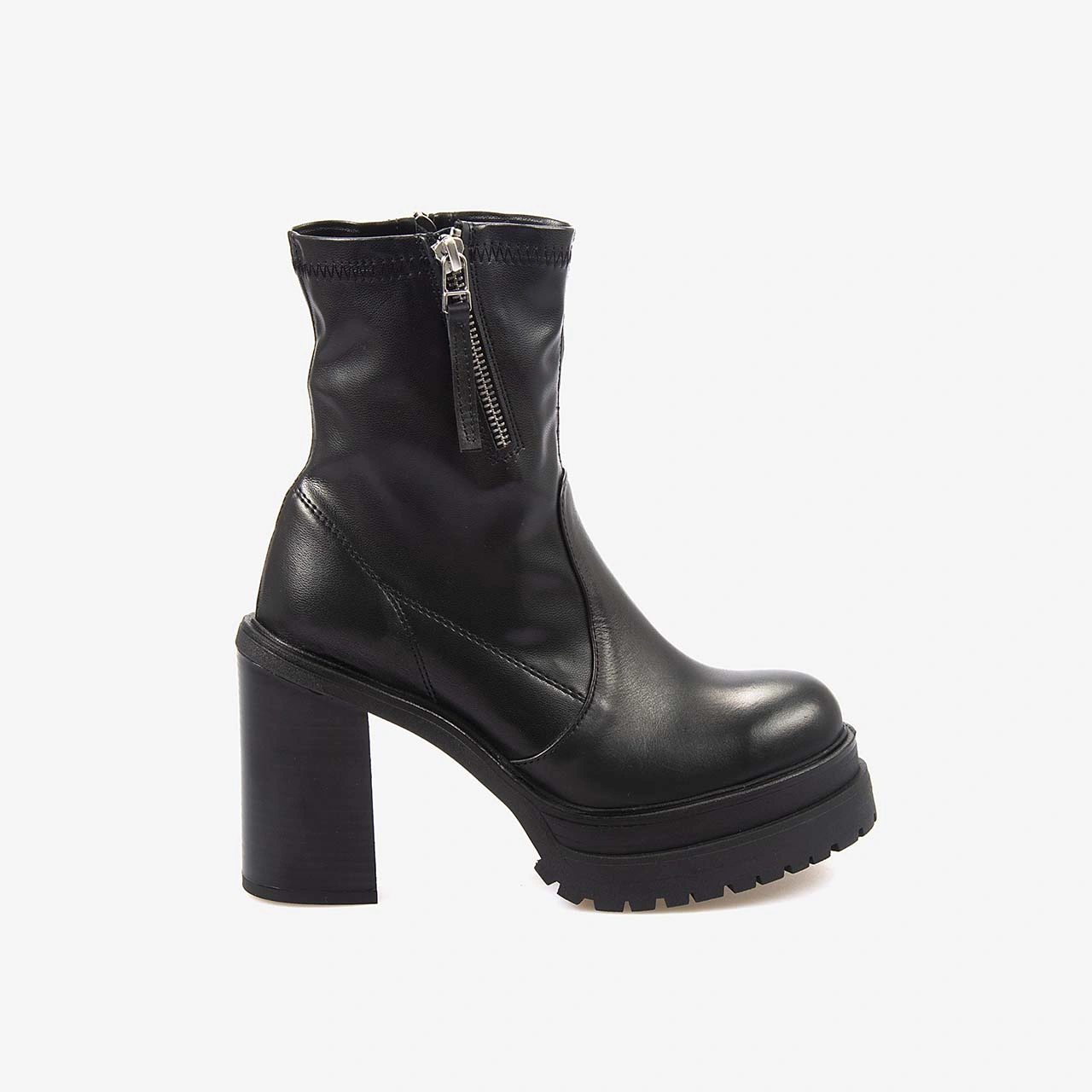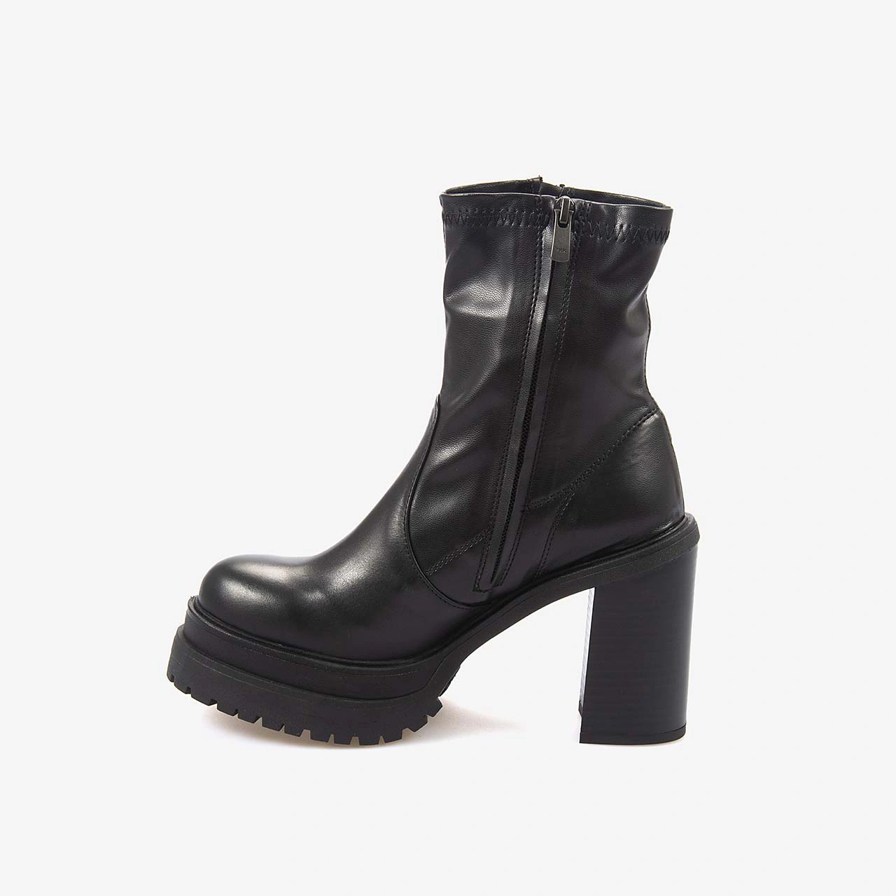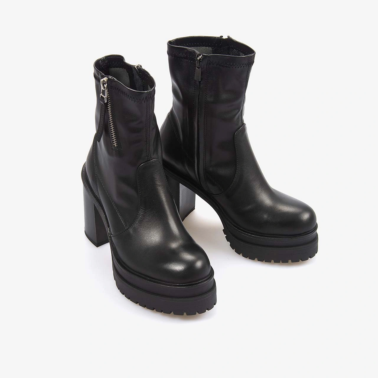 Kemal Tanca Hakiki Deri Kadın Topuklu Bot 7009 Siyah