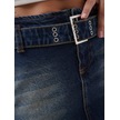 Kemer Detay Denim Mini Etek Koyu Mavi