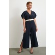 Kemer Detaylı Yarasa Kol Tulum Lacivert Lacivert