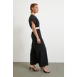 Kadın Daire Yakalı Omuzlardan Kollara Yayılan Kanat Detaylı Çift Renkli Uzun Ithal Krep Elbise Siyah