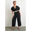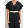 Kemer Detaylı Yarasa Kol Tulum Siyah Siyah