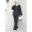 Tesettür İkili Takım Uzun Tunik Bol Paça Pantolon 4006-gri Gri