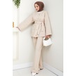 Kemerli Ceket Pantolon Gabardin Takım 1557 - Bej Bej