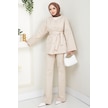 Tesettür İkili Takım Uzun Tunik Bol Paça Pantolon 4006-bej Bej