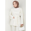 Tesettür İkili Takım Uzun Tunik Bol Paça Pantolon 4006-bej Bej