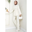 Kemerli Ceket Pantolon Gabardin Takım 1557 - Ekru Ekru