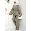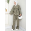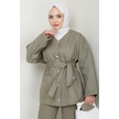 Bağcık Detaylı Tunik Ceket Pantolon Takım Camel Kahverengi