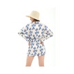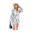 Kemerli Desenli Oversize Blazer Ceket - Mavi-mavi Mavi