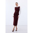 Kemerli Tüvit Elbise - Bordo-136578 Bordo