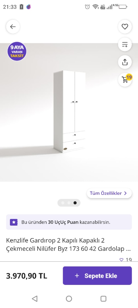 Kenzlife Gardırop 2 Kapılı Kapaklı 2 Çekmeceli Nilüfer Byz 173 60 42 Gardolap Dolap Ofis