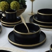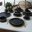 Keramika Mat Siyah Gold Fileli Stackable Yemek / Kahvaltı Takımı 20 Parça 4 Kişilik
