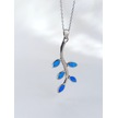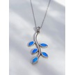 Keskin Gümüş Mavi Opal Taşlı Yaprak Tasarım Kadın Gümüş Kolye
