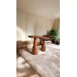 Kestane Renk Doğal Masif Yan Sehpa 2 Li Ahşap Zigon Ve Fiskos