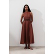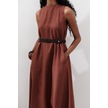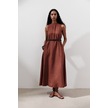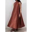 Keten Büzgülü Geniş Elbise Bakır Bakır