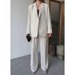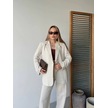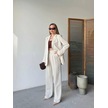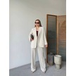 Keten Ceket Pantolon İlik Düğmeli Uzun Kollu Yırtmaçlı İkili Takım - Beyaz Beyaz