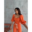 Keten Crop Karpuz Kol Bluz-pantolon Hasır Kemerli - Orange Orange