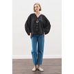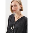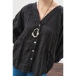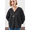 Keten Crush Düğmeli Bluz Siyah Siyah