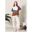 Keten Gökkuşağı Asimetrik Kesim Bluz Renkli Ve Şık Tasarım Mürdüm