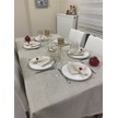 Keten Görünümlü Simli Linen Masa Örtüsü Gold 13 Parça