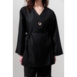 Keten Kruvaze Kapama Kimono Siyah Siyah
