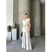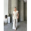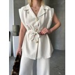 Keten Sıfır Kol Kuşaklı Ceket Pantolon İkili Takım - Beyaz Beyaz