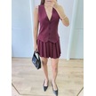 Keten Takım Görünümlü Düğme Detaylı Yelekli Mini Elbise - Bordo Bordo