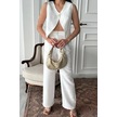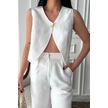 Keten Tek Düğme Yelek-pantolon Takım - Beyaz Beyaz