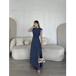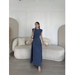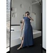Keten Yandan Yırtmaçlı Uzun Elbise Sıfır Kol Elbise - Mavi Mavi