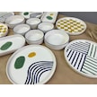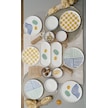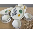 Kevin Seramik Modern Hand Made 14 Parça 6 Kişilik Lüxs Kahvaltılık Sunum Tabağı Seti Mavi - Sarı - Yeşil