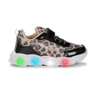 Kiko Kids Teno Cırtlı Işıklı Leopar Kız Çocuk Spor Ayakkabı Siyah Siyah