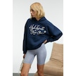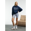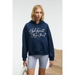 KIKRES Kadın Kapüşonlu Nakış Detaylı Oversize Lacivert Sweatshirt