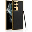 Kilifone - Samsung Uyumlu Galaxy S23 Ultra - Kılıf Deri Görünümlü Elektroplating Kaplama Fizyon Kapak - Siyah