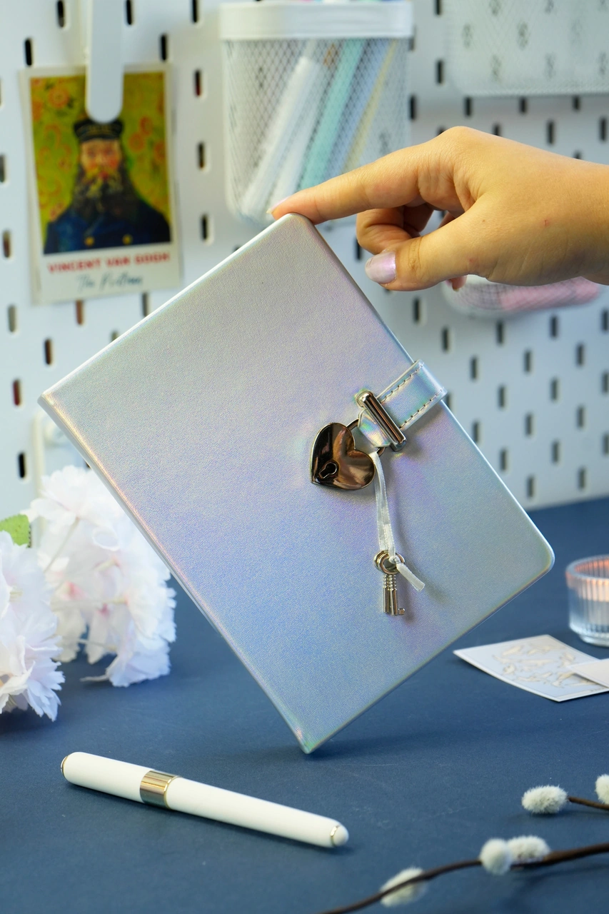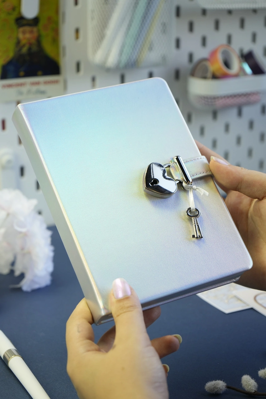 Kilitli Günlük,defter-metalik- Kutulu 13x18 Cm. Hush Hush Gümüş