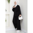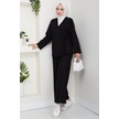 Tesettür İkili Takım Uzun Tunik Bol Paça Pantolon 4006-siyah Siyah