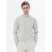 Kip Açık Gri Yarım Balıkçı Yaka Düz Örgü Yün Karışımlı Triko Çok Renkli