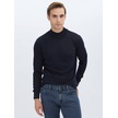 Kip Lacivert Yarım Balıkçı Yaka Düz Örgü Yün Karışımlı Triko Çok Renkli