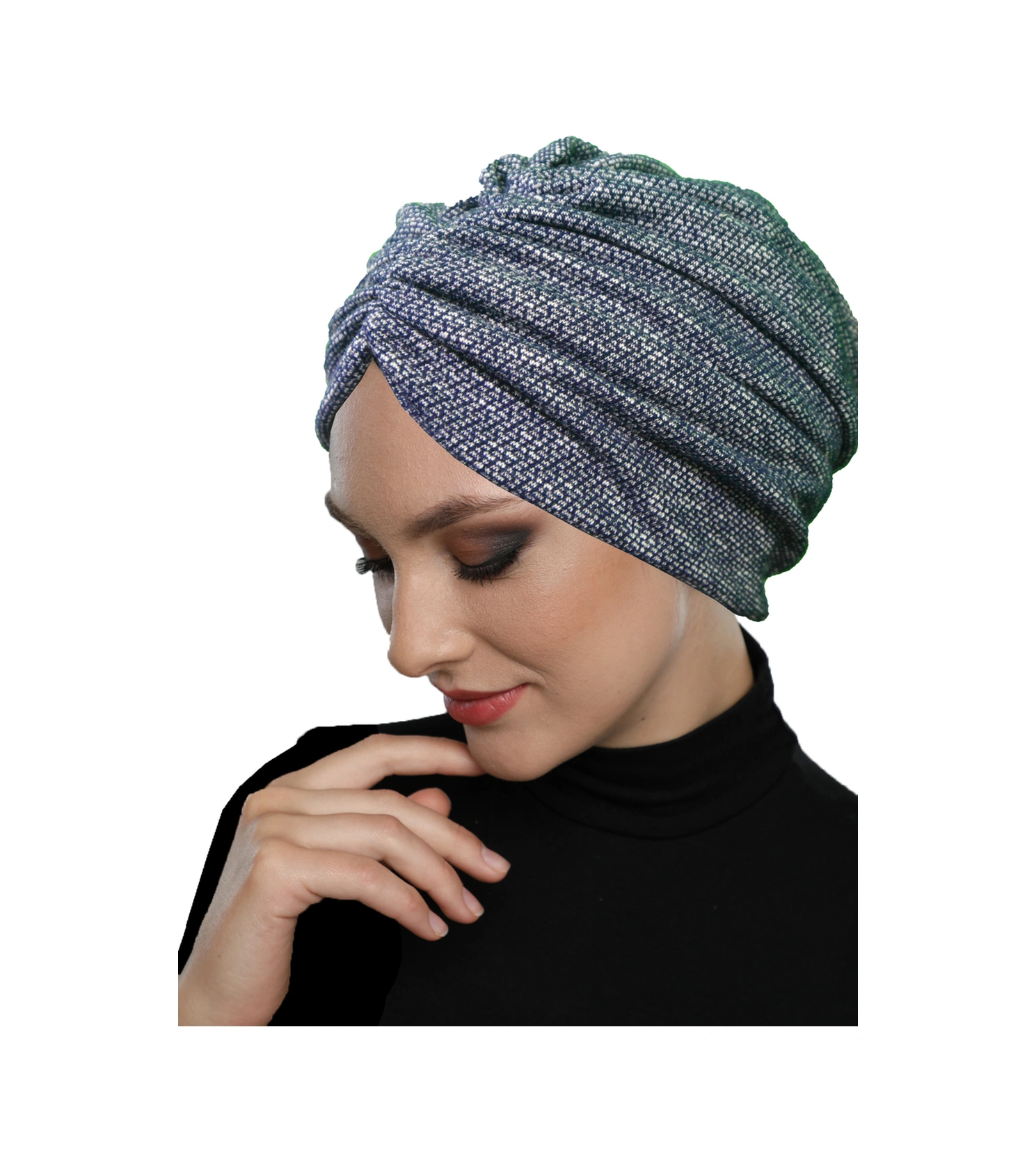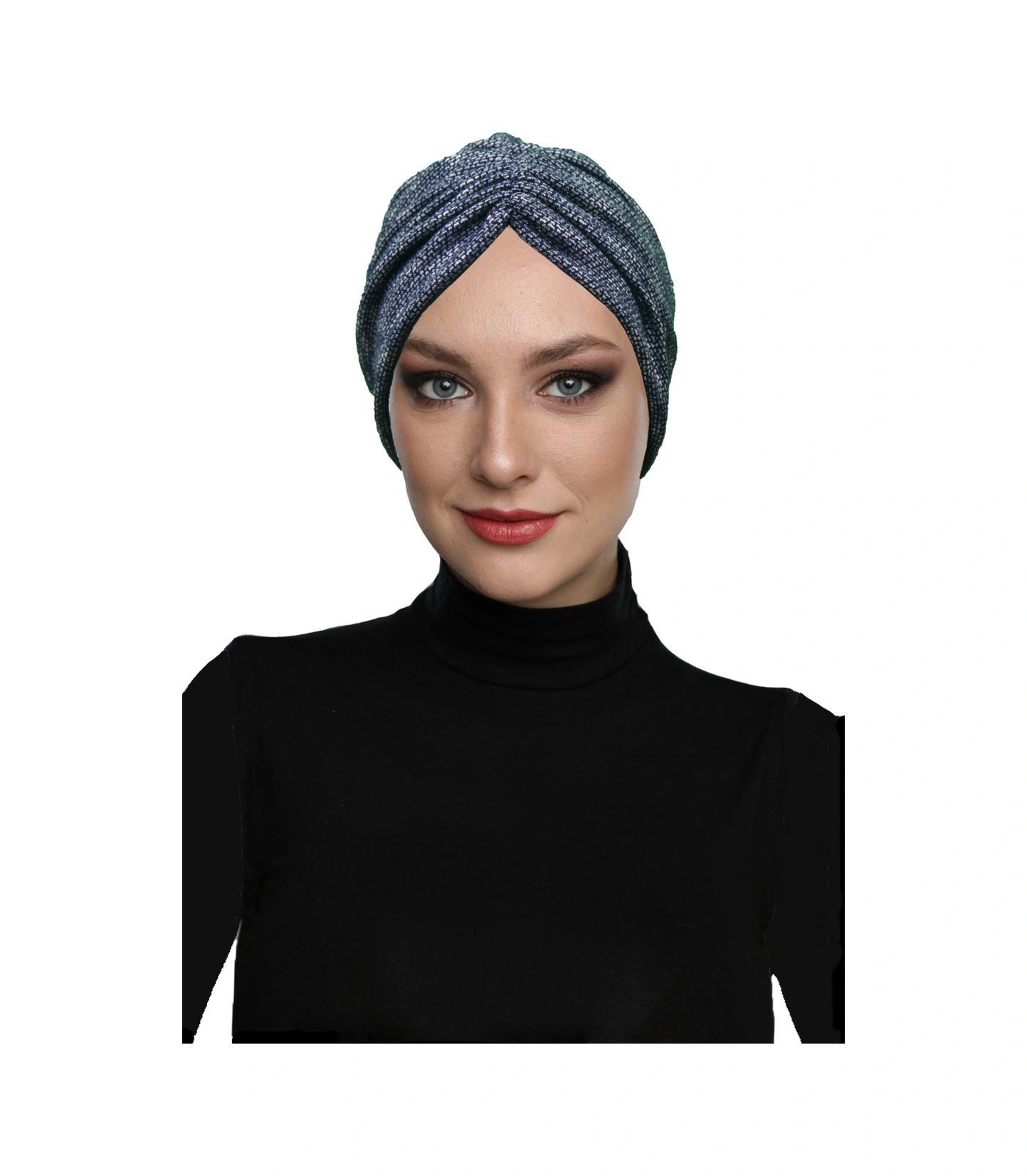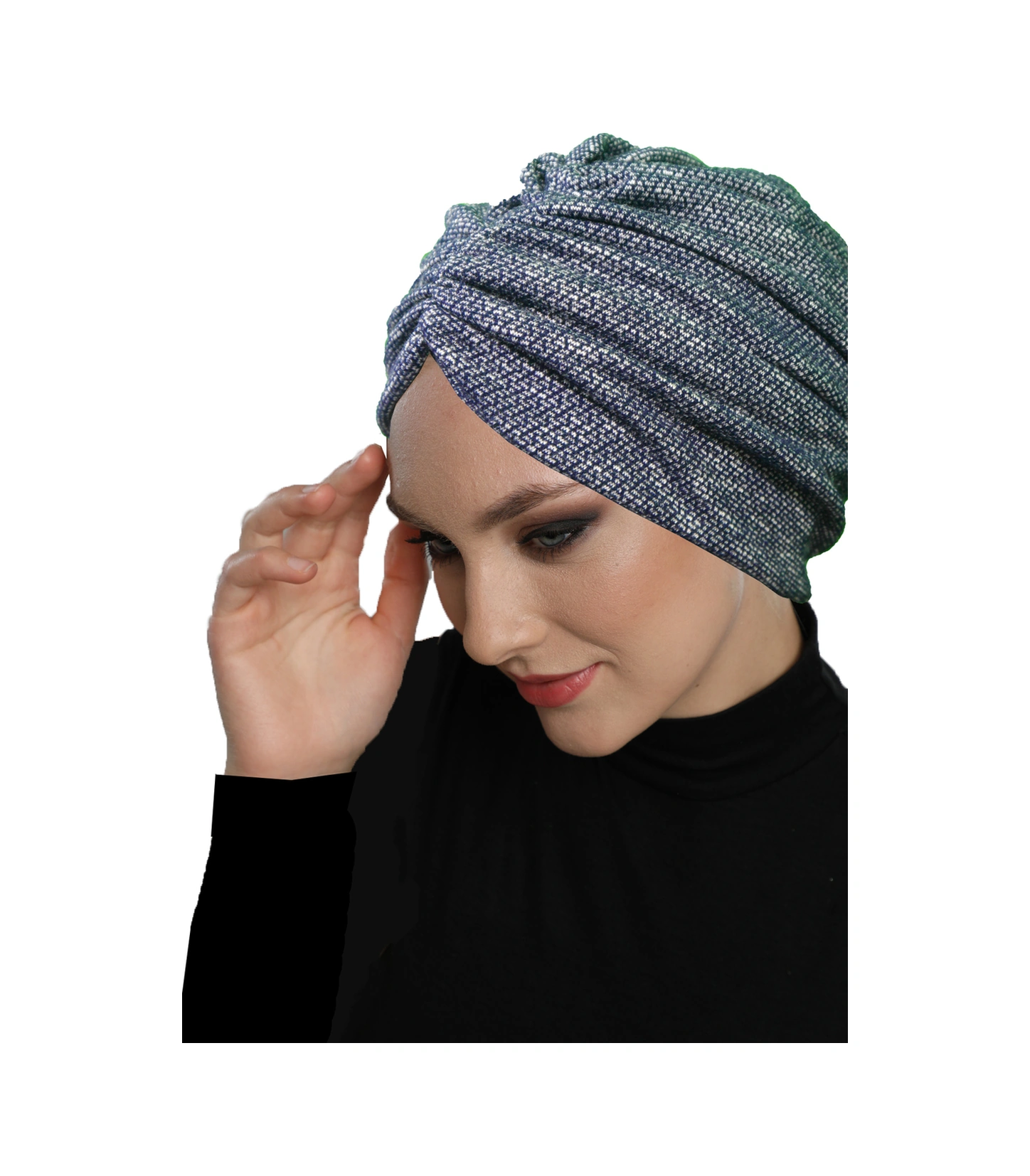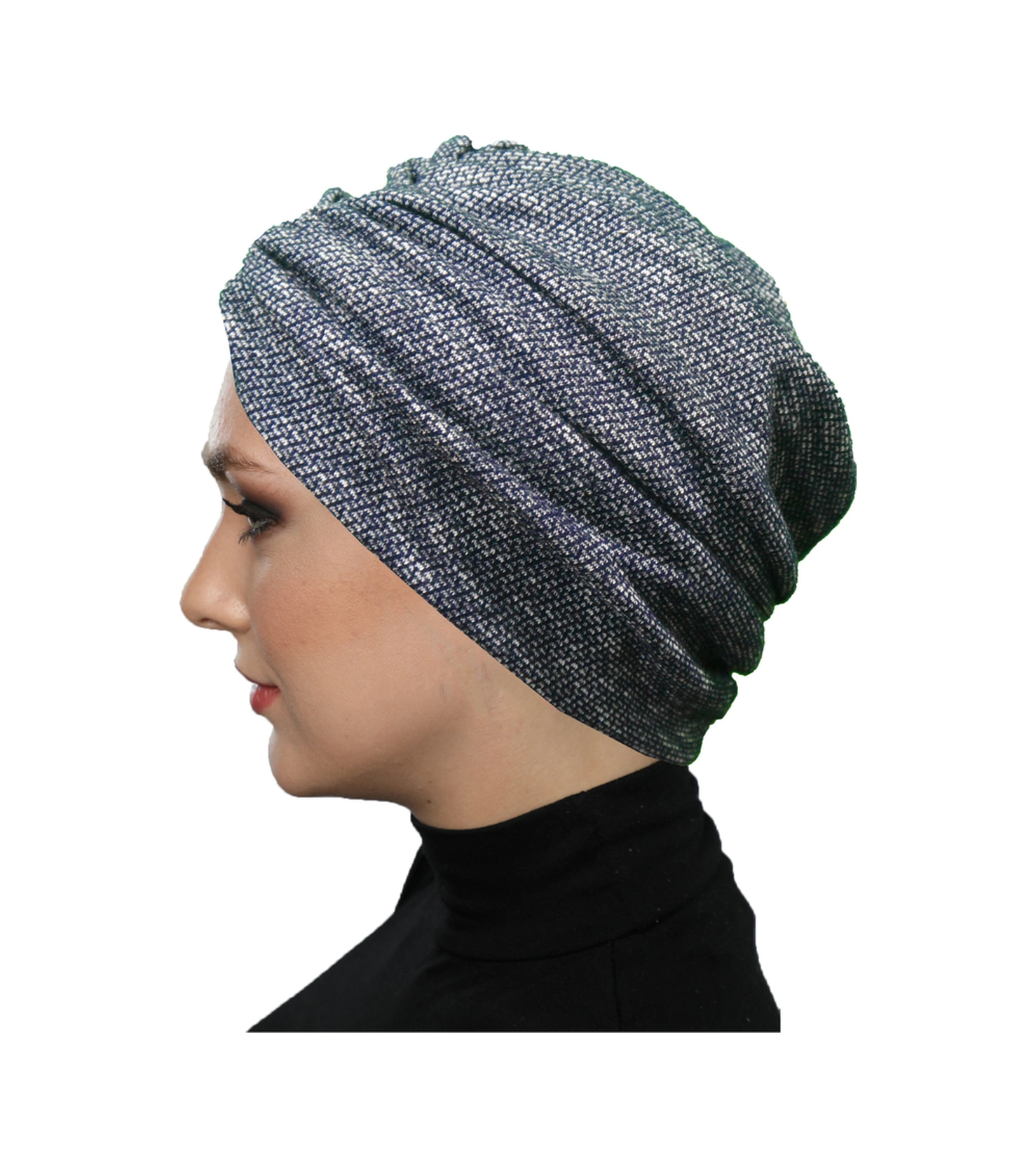 Kırçıllı Desenli Drapeli Lacivert Çift Taraflı Hazır Türban Tesettür Bone Lacivert