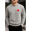Kırmızı Dağ Baskılı Bisiklet Yaka Sweatshirt Gri
