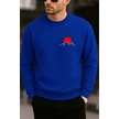 Kırmızı Dağ Baskılı Bisiklet Yaka Sweatshirt Saks Mavisi