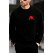 Kırmızı Dağ Baskılı Bisiklet Yaka Sweatshirt Siyah