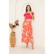 Kırmızı Desenli Yırtmaçlı Midi Etek Dm2014 Kırmızı