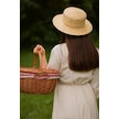 Kırmızı Ekoseli Kapaklı Piknik Sepeti 40x30x19 Cm Hasır Görünümlü Termoform Sepet Kahverengi