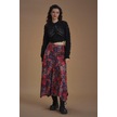 Kırmızı Etnik Desenli Biye Detaylı Asimetrik Kesimli Etek 001