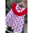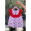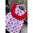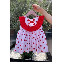 Kırmızı Fırfır Ve Benekli Beyaz Pamuklu Yazlık Elbise 001