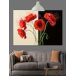 Kırmızı Haşhaş Çiçekleri Sapları Dekoratif Kanvas - Mdf Ahşap Tablo